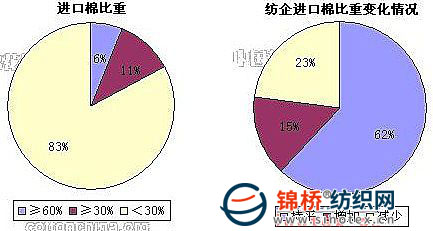 3.棉紡織企業(yè)進(jìn)口棉占總用棉比重:配額傳聞風(fēng)生水起,但是企業(yè)手中依然配額緊張,進(jìn)口棉用量難以增加。調(diào)查結(jié)果顯示,被調(diào)查企業(yè)中,23%減少進(jìn)口棉用量,15%增加進(jìn)口棉用量。紡企進(jìn)口棉比重15.8%,較上月增加0.52個百分點。