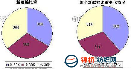 4.棉紡織企業(yè)新疆棉占總用棉比重:第3批國儲棉競拍已經(jīng)開始,為企業(yè)增加采購新疆棉的新途徑,此外一些企業(yè)的新疆棉也陸續(xù)進(jìn)廠。調(diào)查結(jié)果顯示,被調(diào)查企業(yè)中,31%增加新疆棉使用量,31%減少新疆棉使用量。紡企新疆棉占總用棉比重由10月底的51.79%增加至11月底的52.26%。
