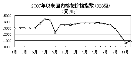 2008年,紡織行業(yè)增加值比上年增長10.3%,增幅同比回落6.2個(gè)百分點(diǎn);出口交貨值7779億元,增長4.7%,回落9.5個(gè)百分點(diǎn)。紗產(chǎn)量2149萬噸,布產(chǎn)量528億米,分別增長8.1%和5.3%,回落8.6和6.8個(gè)百分點(diǎn);化纖產(chǎn)量2405萬噸,增長2.3%,回落15.7個(gè)百分點(diǎn);服裝產(chǎn)量206.5億件,增長4.8%,回落10.2個(gè)百分點(diǎn)。國內(nèi)棉花價(jià)格上半年小幅上升,三季度開始快速下滑。12月末,國內(nèi)棉花價(jià)格指數(shù)為10953元/噸,比6月末下降21%,同比下降19.3%。1-11月,紡織行業(yè)累計(jì)實(shí)現(xiàn)利潤1026億元,同比下降0.7%。其中,紡織業(yè)利潤675億元,增長9.3%;服裝業(yè)利潤317億元,增長13%;化纖業(yè)利潤34億元,下降74.9%。