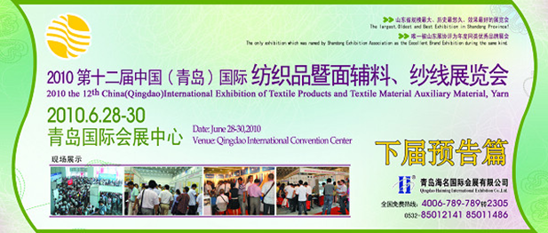 2010年再聚青島續(xù)寫輝煌 “2009第11屆中國(青島)國際紡織品暨面輔料、紗線展覽會”完美的落下了帷幕,它的召開不僅給中國北方市場供需雙方打造了一個優(yōu)秀的貿易洽談交流平臺,同時也為市場應對經(jīng)濟危機帶來了全面的機遇和新生資源,為企業(yè)獲取市場、開拓發(fā)展構建起穩(wěn)固的橋梁。十一年征程,鑄就了今年輝煌的成績,然而這只是展覽會發(fā)展過程中一個階段性成就,組委會將繼續(xù)本著發(fā)展、服務的理念,積極開拓創(chuàng)新,使展覽會規(guī)模、服務、質量在2010年更加完美。期待來自五湖四海的企業(yè)和專業(yè)人士,2010年再次相聚青島,與展會一起續(xù)寫新的輝煌!