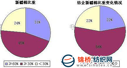3.棉紡織企業(yè)進(jìn)口棉占總用棉比重:新棉雖然上市,但是質(zhì)量不盡人意,新疆棉和進(jìn)口棉依然是許多被調(diào)查大中型企業(yè)的首選。調(diào)查結(jié)果顯示,被調(diào)查企業(yè)中,33%減少進(jìn)口棉用量,45%增加進(jìn)口棉用量。紡企進(jìn)口棉比重31.38%,較上月增加2.86個(gè)百分點(diǎn)。