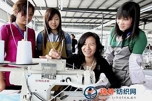 3月18日,在四川眉山市經(jīng)濟(jì)開發(fā)區(qū)內(nèi)的1家服裝公司生產(chǎn)車間里,1名技師(右二)指導(dǎo)返鄉(xiāng)女工縫制服裝。作為勞務(wù)輸出大市的四川眉山市,隨著經(jīng)濟(jì)快速發(fā)展,當(dāng)?shù)仄髽I(yè)的用工需求量也越來越大,今年以來已經(jīng)有上萬名返鄉(xiāng)農(nóng)民工選擇在當(dāng)?shù)仄髽I(yè)就業(yè)。
