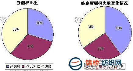 4.棉紡企業(yè)新疆棉占總用棉比重:新疆棉出運困難令一些紡企望而卻步,目前企業(yè)在使用的新疆棉多是節(jié)前采購,對于節(jié)后價格操作謹慎。調查結果顯示,被調查企業(yè)中,25%增加新疆棉使用量,35%減少新疆棉使用量。紡企新疆棉占總用棉比重50.39%。