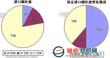 3.棉紡織企業(yè)進(jìn)口棉占總用棉比重:紐約期貨棉花價(jià)格持續(xù)攀高,國內(nèi)紡織企業(yè)望而卻步。目前國內(nèi)紡織企業(yè)使用的進(jìn)口棉大多是在棉花價(jià)格大幅上漲之前訂購的棉花。調(diào)查結(jié)果顯示,被調(diào)查企業(yè)中,39%減少進(jìn)口棉用量,11%增加進(jìn)口棉用量。紡織企業(yè)進(jìn)口棉比重由上月的20.98%減少至19.39%。