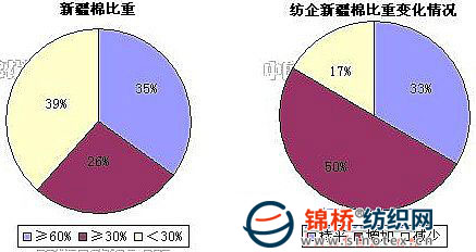 4.棉紡織企業(yè)新疆棉占總用棉比重:新疆棉出運(yùn)困難依然是令紡織企業(yè)頭疼的問題,甚至有企業(yè)直接派人去新疆督促發(fā)貨。為緩解用棉緊張,還有部分企業(yè)通過內(nèi)地倉庫采購新疆棉。調(diào)查結(jié)果顯示,被調(diào)查企業(yè)中,50%增加新疆棉使用量,17%減少新疆棉使用量。紡織企業(yè)新疆棉占總用棉比重由上月的50.39%增加至50.65%。