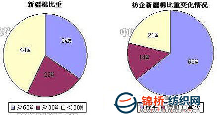 4.棉紡企業(yè)新疆棉占總用棉比重:新疆棉出運困難依然是新疆棉業(yè)發(fā)展的主要瓶頸,也制約的內(nèi)地企業(yè)的采購及使用。調(diào)查結(jié)果顯示,被調(diào)查企業(yè)中,14%增加新疆棉使用量,21%減少新疆棉使用量。紡企新疆棉占總用棉比重由上月的50.65%減少至50.4%。