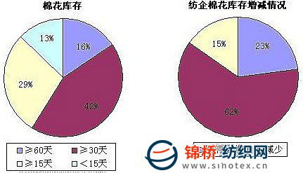 2、棉紡織企業(yè)紗布庫存情況:依然在買漲不買跌的心理驅(qū)使下,棉紡廠紗線銷售活躍,價(jià)格頻繁上調(diào)。與此同時(shí),坯布銷售價(jià)格跟漲困難,銷售情況相對穩(wěn)定。調(diào)查結(jié)果顯示,紡織企業(yè)紗線庫存由上月的10.33天減少至8.88天,坯布庫存由上月的15.92天減少至15.49天。