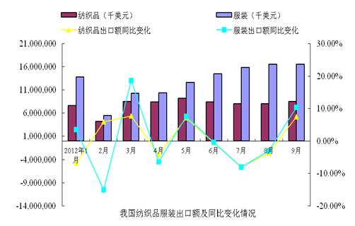 2012年9月紡織品服裝出口情況