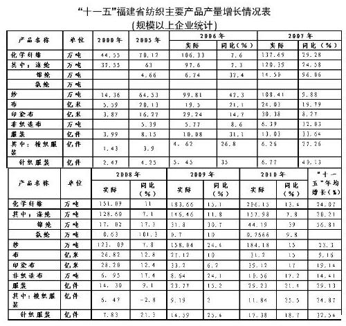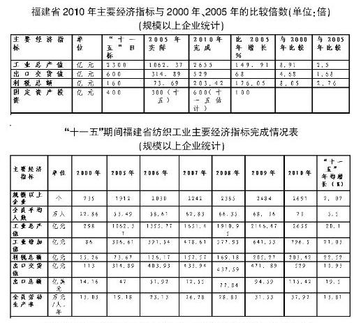 紡織服裝業(yè)是福建省傳統(tǒng)優(yōu)勢(shì)加工業(yè)。黨的十六大以來,福建省紡織業(yè)經(jīng)過10多年的快速發(fā)展,已形成化纖、棉紡、織造、印染、非織造布、針織、產(chǎn)業(yè)用紡織、家用紡織品、服裝服飾、紡機(jī)紡器等門類齊全的紡織工業(yè)體系,紡織經(jīng)濟(jì)總量位居全國前五位。“十一五”期間,是福建省紡織業(yè)發(fā)展最快的時(shí)期,化纖、棉紡織、服裝三大產(chǎn)業(yè)強(qiáng)勁發(fā)展;印染、產(chǎn)業(yè)用紡織品、紡織機(jī)械等產(chǎn)業(yè)加快發(fā)展。至2011年末,全省紡織主要行業(yè)產(chǎn)能化纖達(dá)到250萬噸左右,居全國第3,其中錦綸50萬噸,居全國第2位;棉紡紗錠800多萬錠以上,紗線產(chǎn)能達(dá)200萬噸以上,居全國第6;布產(chǎn)量為40億米左右(包括化纖絲織物),居全國第8;針織品加工100萬噸以上,居全國第5;印染能力40億米以上,居全國第5;服裝產(chǎn)能35億件,居全國第5。從這一組組數(shù)字中,我們看到了福建省紡織業(yè)的強(qiáng)勁發(fā)展勢(shì)頭和競(jìng)爭(zhēng)優(yōu)勢(shì)。如今,福建紡織大省秣馬厲兵,正在向紡織強(qiáng)省目標(biāo)奮力挺進(jìn)…… 全省行業(yè)強(qiáng)勁發(fā)展經(jīng)濟(jì)指標(biāo)快速增長(zhǎng) 10年來,隨著我國經(jīng)濟(jì)融入全球經(jīng)濟(jì)一體化速度的加快,以及紡織服裝內(nèi)需和對(duì)外出口的大幅度增加,福建省紡織服裝業(yè)在加大民營(yíng)、外資投資建設(shè),行業(yè)規(guī)??焖偻卣梗a(chǎn)業(yè)結(jié)構(gòu)調(diào)整步伐明顯加快,全行業(yè)強(qiáng)勁發(fā)展,主要經(jīng)濟(jì)指標(biāo)快速增長(zhǎng)。據(jù)統(tǒng)計(jì),截至2010年,福建紡織全行業(yè)職工突破120萬人,紡織工業(yè)的化纖、棉紡、織造、印染、非織造布、產(chǎn)業(yè)用紡織品、家用紡織品、服裝服飾、紡機(jī)紡器等行業(yè)結(jié)構(gòu)體系進(jìn)一步加強(qiáng)。其中全省規(guī)模以上紡織企業(yè)達(dá)2691家,職工70多萬人,完成工業(yè)總產(chǎn)值2655億元,居全國第5位,同比增長(zhǎng)12.2%,5年間增長(zhǎng)了149.91%,平均年遞增20.1%,產(chǎn)銷率為96.64。在2000年至2010年的十年間,福建省紡織工業(yè)總產(chǎn)值增長(zhǎng)7.91倍,出口交貨值增長(zhǎng)了3.68倍,利稅總額增長(zhǎng)了7.05倍。 從2000年到2010年的10年間,福建省紡織主要產(chǎn)品產(chǎn)量大幅增長(zhǎng),其中2010年全省化纖纖維產(chǎn)量為206.15萬噸,比2000年增長(zhǎng)3.63倍;紗產(chǎn)量為184.18萬噸,是2000年的11.83倍;布產(chǎn)量為31.2億米,是2000年的4.58倍;印染布產(chǎn)量為39.12億米,是2000年的9.1倍;服裝產(chǎn)量為29.23億件,是2000年的6.33倍。 近年來,福建省紡織服裝出口保持平穩(wěn)增長(zhǎng),2008年受國際金融危機(jī)沖擊影響,全省紡織服裝出口增幅回落。2009年至2010年,全省紡織服裝出口啟穩(wěn)回升,據(jù)海關(guān)統(tǒng)計(jì),2010年福建省紡織服裝口交貨值為529億元,比2005年增長(zhǎng)68%,平均年遞增10.93%;年出口總額為115.42億美元,同比增長(zhǎng)22%。 產(chǎn)業(yè)結(jié)構(gòu)調(diào)整顯著品種檔次長(zhǎng)足發(fā)展 近年來,福建省紡織服裝行業(yè)增加高新技術(shù)、高附加值產(chǎn)業(yè)投資,行業(yè)結(jié)構(gòu)調(diào)整步伐加快,產(chǎn)業(yè)調(diào)整成效顯著。其中,化纖、棉紡織、印染、服裝等行業(yè)發(fā)展成為全省紡織工業(yè)的主要支撐;紡織新纖維、產(chǎn)業(yè)用紡織品、新型紡織面料、紡織機(jī)械等產(chǎn)業(yè)長(zhǎng)足發(fā)展;新型產(chǎn)業(yè)用紡織品成為全省紡織經(jīng)濟(jì)發(fā)展新增長(zhǎng)點(diǎn);紡織機(jī)械制造行業(yè)承接國內(nèi)外紡機(jī)轉(zhuǎn)移能力得到提高,針織緯編機(jī)產(chǎn)能占國內(nèi)市場(chǎng)份額超80%。紡織產(chǎn)品結(jié)構(gòu)中棉紡、織造,產(chǎn)業(yè)用紡織品需求的錦綸、滌綸、氨綸等長(zhǎng)絲、短纖維不斷增加;新型細(xì)旦、異形以及特殊功能差別化纖維比例得到提高;隨著紡織品深加工水平的提高,棉紡紗線、染整面料、服裝等品種檔次得到提升,產(chǎn)品由單一纖維向多種纖維以及多種纖維混紡方向轉(zhuǎn)型發(fā)展;產(chǎn)業(yè)用紡織品在醫(yī)衛(wèi)材料、工業(yè)過濾、運(yùn)輸建筑、農(nóng)業(yè)、包裝、制革、鞋材、服裝、裝飾等領(lǐng)域得到廣泛應(yīng)用。 目前,全省化纖差別化率已從"十一五"初期的30%提升到2011年的50%;棉紡織產(chǎn)品"三無一精"比重不斷提高,棉紡無卷化率從"十一五"初期不到10%提升到2011年的30%;紗線無接頭率從2005年的8%提升到2011年的50%。全省棉紡坯布、化纖織造無梭率已經(jīng)提高到85%以上;印染行業(yè)節(jié)能降耗、廢水處理工藝技術(shù)水平進(jìn)一步提高,印染產(chǎn)品轉(zhuǎn)向環(huán)保、功能、休閑、時(shí)尚方向發(fā)展;家紡和服裝業(yè)注重設(shè)計(jì)理念提升,應(yīng)用新型環(huán)保、功能性、時(shí)尚面料以及提高縫制加工工藝等達(dá)到新水平;產(chǎn)業(yè)用紡織品的水刺、針刺、紡粘、融噴等工藝以及多種交叉工藝的復(fù)合非織造布生產(chǎn)技術(shù)不斷發(fā)展。全省產(chǎn)品質(zhì)量和勞動(dòng)生產(chǎn)率進(jìn)一步提高,截至2011年底,全省紡織行業(yè)棉紡萬錠平均用工從150人左右降