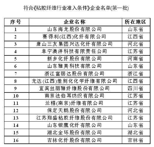 符合《粘膠纖維行業(yè)準(zhǔn)入條件》首批企業(yè)名單公布
