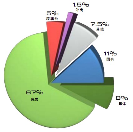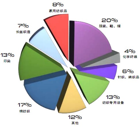 從203家紡織服裝企業(yè)收回的問(wèn)卷調(diào)查來(lái)看,參與調(diào)查的企業(yè)中,按企業(yè)性質(zhì)分:國(guó)有控股企業(yè)占11%,集體控股占8%,民營(yíng)企業(yè)占67%,港澳臺(tái)商控股占5%,外商控股占1.5%,其他控股占7.5%?! ?/p> 按行業(yè)類別分:棉紡織行業(yè)占17%,印染行業(yè)占13%,長(zhǎng)絲織造行業(yè)7%,家用紡織品制造業(yè)占8%,服裝、鞋、帽制造業(yè)占20%,化學(xué)纖維制造業(yè)占4%,針織、編織品制造業(yè)占6%,紡織專用設(shè)備制造業(yè)占13%,其他行業(yè)占12%?!?/p>