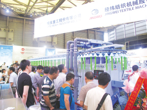 青島華信機(jī)械有限公司主要參展產(chǎn)品是擁有自主知識(shí)產(chǎn)權(quán)的最新型噴水織布機(jī)。青島華信紡機(jī)與世界著名電子大學(xué),歷時(shí)3年,共同開發(fā)研制成功擁有自主技術(shù)產(chǎn)權(quán)的HX8100系列噴水織機(jī),實(shí)現(xiàn)了最高水準(zhǔn)的織造自動(dòng)化。 華信HX8100系列噴水織機(jī)實(shí)現(xiàn)了電子送經(jīng)、電子卷取、電子儲(chǔ)緯、自動(dòng)巡緯、自動(dòng)穿紗、自動(dòng)核對(duì)織口,并且可以遠(yuǎn)程網(wǎng)絡(luò)控制、辦公室連接網(wǎng)絡(luò)化,對(duì)每個(gè)班、每天、每月生產(chǎn)情況隨時(shí)可以自動(dòng)合計(jì)。打印報(bào)表、產(chǎn)量、質(zhì)量、效率、停機(jī)時(shí)間、停機(jī)原因等一目了然。展會(huì)展出的新型噴水織布機(jī)的現(xiàn)場(chǎng)工作運(yùn)轉(zhuǎn)速度是1148轉(zhuǎn)/分鐘,采用節(jié)能降耗設(shè)計(jì),每臺(tái)機(jī)器每年為用戶節(jié)省電費(fèi)1.8萬(wàn)元。 宏濤公司拉幅定型機(jī)使用熱風(fēng)循環(huán)