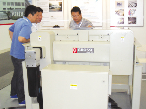 浙江飛虎科技公司研發(fā)的擁有自主知識(shí)產(chǎn)權(quán)的“華倫飛虎”牌FHP-132S/FHP132F型電腦橫機(jī)采用單機(jī)頭、雙系統(tǒng)的編織系統(tǒng),翻針三角復(fù)合式設(shè)計(jì),兩個(gè)系統(tǒng)皆可單獨(dú)或同時(shí)翻針,也可一系統(tǒng)翻針,另一系統(tǒng)編織。電腦控制界面采用LCD菜單形式,使得操作簡(jiǎn)單易懂。S系列配置起底板功能,實(shí)現(xiàn)了單片布面自動(dòng)起頭、自動(dòng)結(jié)束的功能,讓布片的編織過程更加智能,有效地減少了編織廢紗,提高了生產(chǎn)效率。機(jī)型編織內(nèi)容豐富,主要用于羊毛衫的自動(dòng)編織,適用于絲、棉、毛、滌綸、混紡等原料,可編織雙面提花、單面提花、單面無(wú)虛線提花、挑洞、絞花等有規(guī)則或無(wú)規(guī)則花樣。 該設(shè)備新增了機(jī)頭快速回轉(zhuǎn)系統(tǒng)CQR,通過對(duì)電控模塊和伺服模塊優(yōu)化整合,加強(qiáng)機(jī)頭回轉(zhuǎn)的平穩(wěn)性,實(shí)現(xiàn)快速換向,比傳統(tǒng)效率提升5%~10%,有效提高編織效率,換向更平穩(wěn),運(yùn)行更安全可靠。 江陰國(guó)光壓光機(jī)具備智能控制功能 江陰國(guó)光集團(tuán)展出的壓光機(jī)采用智能控制系統(tǒng),所有設(shè)備的運(yùn)行信息在觸摸屏中均有顯示,觸摸屏能夠?qū)崟r(shí)顯示液壓站的工作狀態(tài),當(dāng)設(shè)備發(fā)生異常時(shí),系統(tǒng)會(huì)自動(dòng)報(bào)警提醒。觸摸屏對(duì)于硬輥的溫度補(bǔ)單有數(shù)值顯示,更配有曲線圖進(jìn)行檢測(cè)。 該設(shè)備能夠根據(jù)用戶設(shè)定的生產(chǎn)目標(biāo)進(jìn)行生產(chǎn),客戶所需的設(shè)備信息、生產(chǎn)信息,可以通過自定義設(shè)置打印出來(lái)以便查看。且設(shè)備有歷史數(shù)據(jù)存儲(chǔ)系統(tǒng),可與手機(jī)連接,即使不在生產(chǎn)車間,也可知道運(yùn)行情況。此外,公司配備了遠(yuǎn)程維護(hù)系統(tǒng),通過郵件進(jìn)行設(shè)備維護(hù),既省時(shí)又降低了維護(hù)成本。 關(guān)鍵詞4:最新成果 格羅斯無(wú)通絲提花機(jī)全球首創(chuàng)