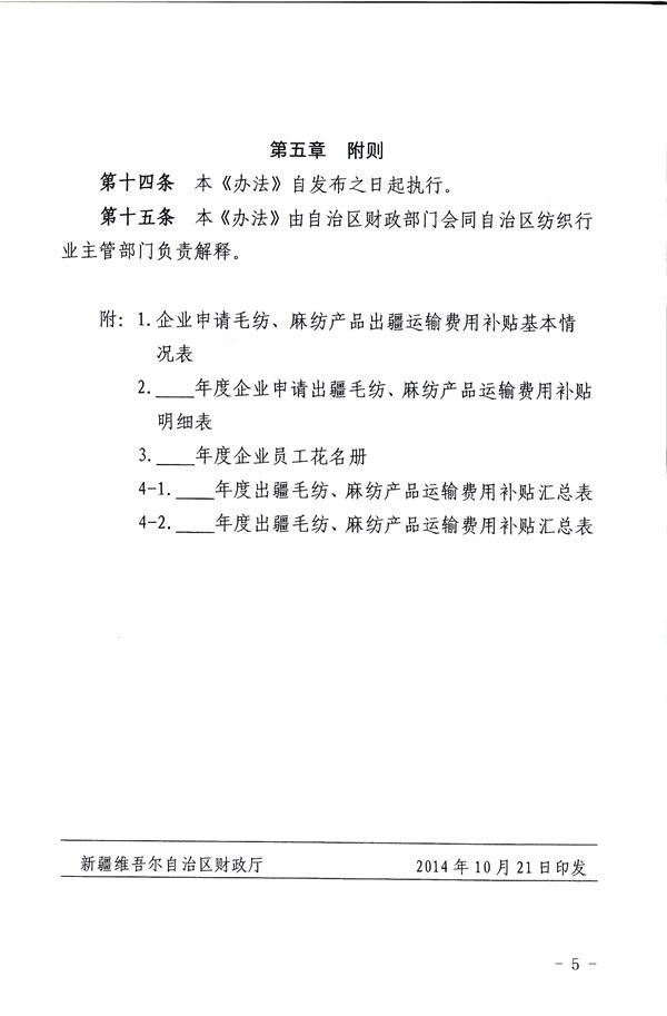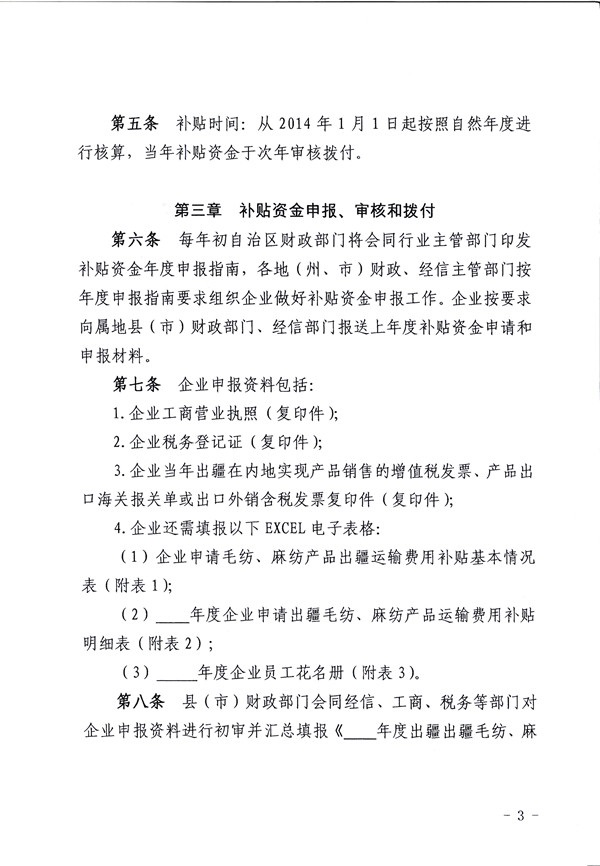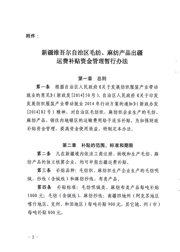 《新疆維吾爾自治區(qū)毛紡 麻紡產(chǎn)品出疆運(yùn)費(fèi)補(bǔ)貼資金管理暫行辦法》
