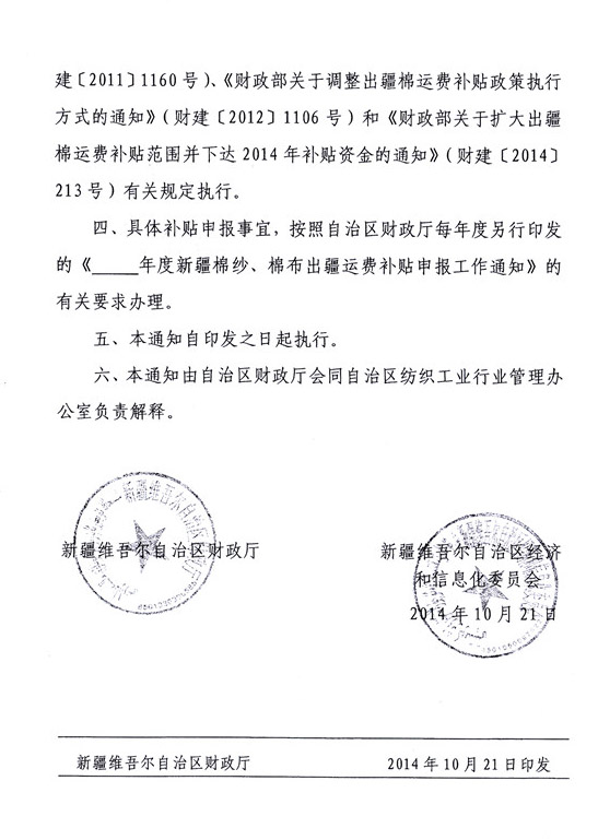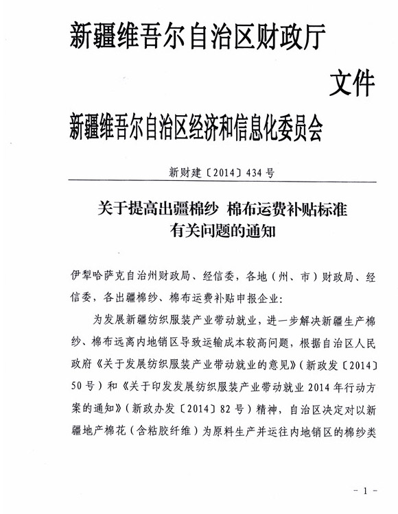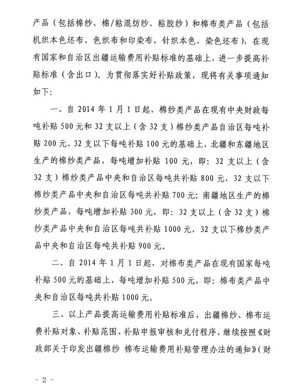 《關(guān)于提高出疆棉紗 棉布運(yùn)費(fèi)補(bǔ)貼標(biāo)準(zhǔn)的通知》