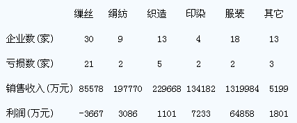 全省繅絲企業(yè)累計利潤額本月繼續(xù)出現(xiàn)虧損,虧損面達(dá)70%,虧損額同比大幅上升;絹紡企業(yè)累計利潤額同比有較大幅度提高;織造企業(yè)、印染企業(yè)、其它企業(yè)累計利潤額同比有所下降;服裝企業(yè)累計利潤額同比略有上升。 轉(zhuǎn)載本網(wǎng)專稿請注明:"本文轉(zhuǎn)自錦橋紡織網(wǎng)"。 更多紡織專業(yè)資訊,關(guān)注錦橋紡織網(wǎng)微信公眾號。微信搜:錦橋紡織網(wǎng)