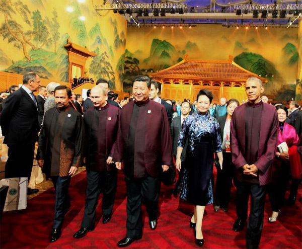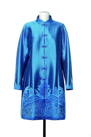 女領(lǐng)導(dǎo)人服裝款式為“立領(lǐng)、對襟、連肩袖,雙宮緞面料、飾海水江崖紋”外套 立領(lǐng)、蘇繡、連肩袖;宋錦、漳緞、對開襟。2014年,當APEC領(lǐng)導(dǎo)人會議重新回到中國,大氣的特色中式服裝瞬間點亮了全場。各美其美,美美與共。中西合璧,和而不同。 轉(zhuǎn)載本網(wǎng)專稿請注明:"本文轉(zhuǎn)自錦橋紡織網(wǎng)"。 更多紡織專業(yè)資訊,關(guān)注錦橋紡織網(wǎng)微信公眾號。微信搜:錦橋紡織網(wǎng)
