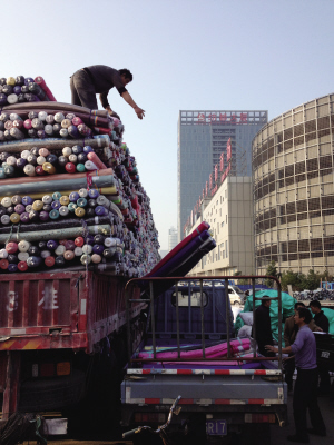 布匹直達(dá)市場(chǎng)貨場(chǎng):一車一車的布匹直接把貨運(yùn)到市場(chǎng)貨場(chǎng),商戶直接在店門口裝卸布匹。