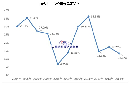 因此,未來國內(nèi)紡織行業(yè)部分產(chǎn)能將逐步轉(zhuǎn)移至海外,新增的國內(nèi)和外商投資也將大幅下降。近年來,我國紡織行業(yè)的投資額一直保持在兩位數(shù)以上(08年全球經(jīng)濟危機除外),預計未來幾年將下降至個位數(shù)。但投資的下降并不意味著行業(yè)的衰退,優(yōu)勢企業(yè)通過海外投資,實現(xiàn)全球資源共享,將推動行業(yè)的轉(zhuǎn)型升級和行業(yè)增長質(zhì)量的提高。