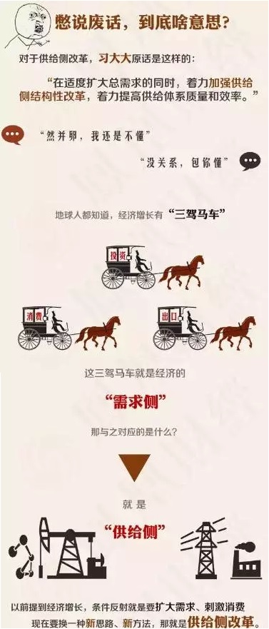 所謂“供給側(cè)改革”,就是從供給、生產(chǎn)端入手,通過解放生產(chǎn)力,提升競爭力促進(jìn)經(jīng)濟(jì)發(fā)展。具體而言,就是要求清理僵尸企業(yè),淘汰落后產(chǎn)能,將發(fā)展方向鎖定新興領(lǐng)域、創(chuàng)新領(lǐng)域,創(chuàng)造新的經(jīng)濟(jì)增長點(diǎn)。