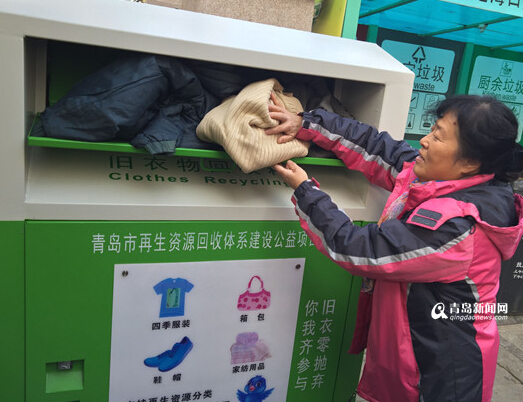 8日下午,記者來到位于市南區(qū)臺南路1號小區(qū)內(nèi)一處舊衣物回收點。家住附近的市民高女士和鄰居分別將自家閑置的舊衣物投進了回收箱。高女士說:“家里七八成新的衣服扔了可惜,送人又不知道送誰,放到這里真方便,還省去了捐衣服的運費。”