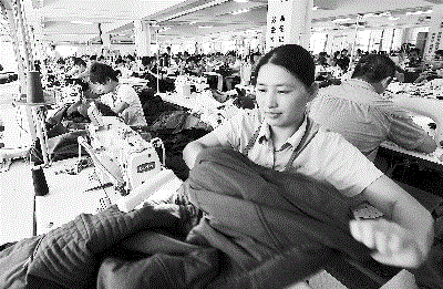 《石獅統(tǒng)計月報2015.10》數(shù)據(jù)顯示,全市規(guī)模以上服裝產(chǎn)業(yè)今年已累計實現(xiàn)工業(yè)產(chǎn)值267.0449億元,工業(yè)產(chǎn)值同比增長7.0%,銷售產(chǎn)值同比增長7.3%,銷略大于產(chǎn),出口交貨值為-7.3%的負(fù)增長,表明服裝出口出現(xiàn)較強(qiáng)的阻力。圖為石獅規(guī)模服裝企業(yè)正在生產(chǎn)出口訂單。