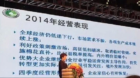 2015年3月28日,中國棉紡織行業(yè)協(xié)會第四屆第六次理事擴大會暨金陵國際棉花棉紗論壇在南京召開,中棉行協(xié)會長朱北娜在會議上做《2015年中國棉紡織行業(yè)展望》主題演講,主要內(nèi)容如下:引言:2014年經(jīng)營表現(xiàn)