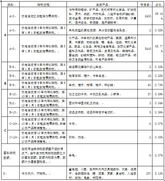 ?。ㄗⅲ核袛?shù)量為凈毛重量,所謂“階段”是指協(xié)定生效后的自然日歷年份)