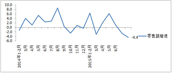 根據(jù)中華全國(guó)商業(yè)信息中心的統(tǒng)計(jì),2015年8月全國(guó)百家重點(diǎn)大型零售企業(yè)服裝類商品零售額同比下降4.4%,增速較上月降幅擴(kuò)大1.8個(gè)百分點(diǎn),較上年同期低13.0個(gè)百分點(diǎn),為近兩年來(lái)最低月度增速。