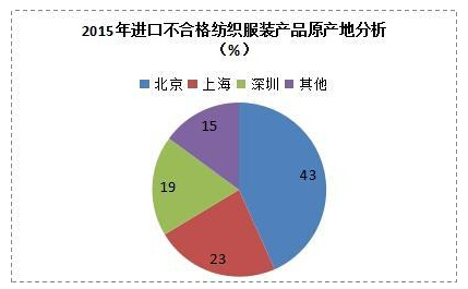北京、上海、深圳是2015年進(jìn)口不合格工業(yè)品紡織服裝產(chǎn)品的主要進(jìn)境口岸,三地合計共占85%,相關(guān)口岸檢驗檢疫機構(gòu)應(yīng)注意把控風(fēng)險。