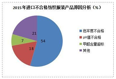 色牢度、pH值不合格及甲醛含量超標(biāo)是2015年進(jìn)口紡織服裝產(chǎn)品不合格的主要原因,三者合計共占79.5%,而其他不合格原因包括安全標(biāo)識標(biāo)簽標(biāo)注錯誤或缺失、含有禁用可分解芳香胺染料、纖維成分含量不合格等占了剩余20.5%,原因不容忽視。