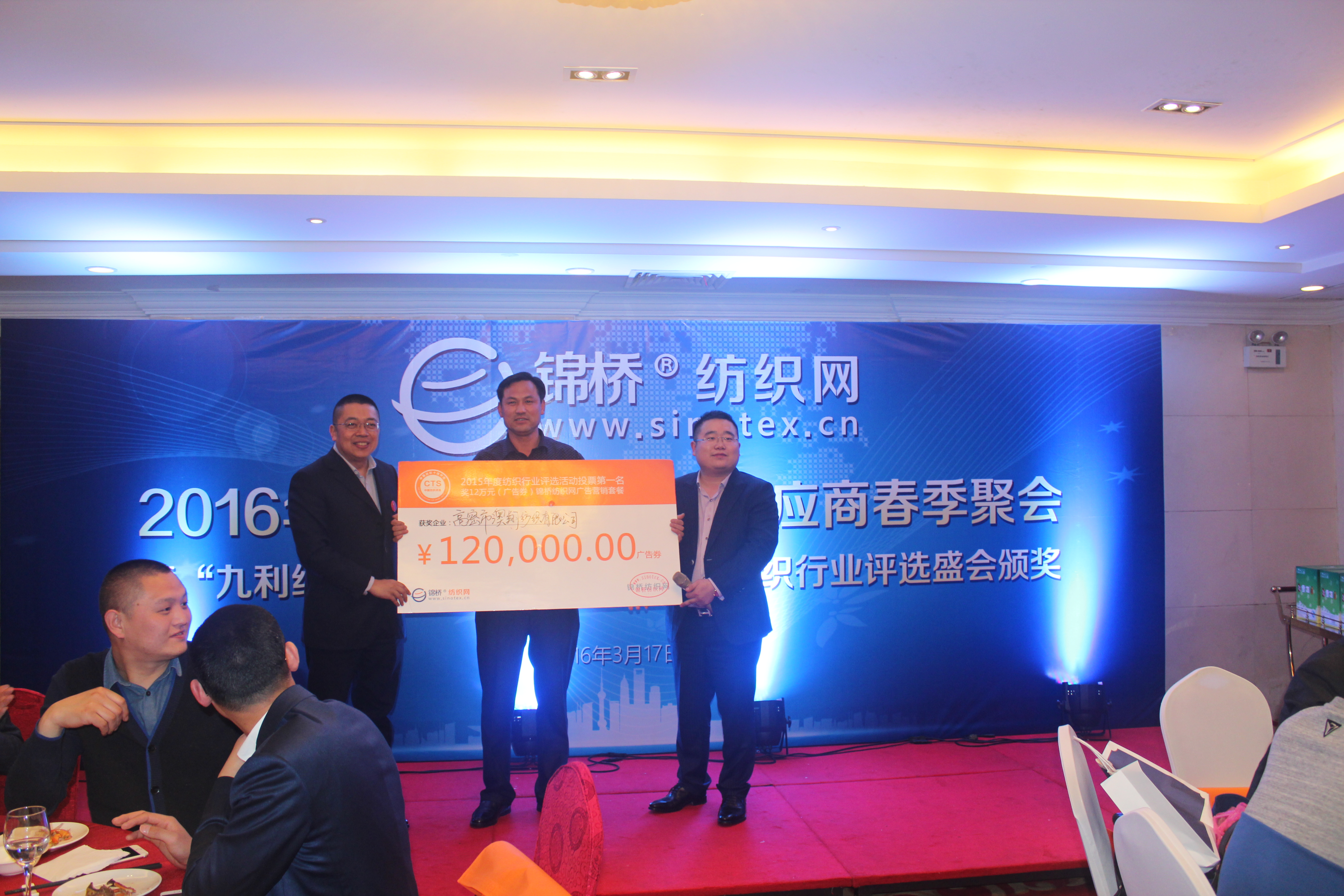 錦橋紡織網(wǎng)訊:3月17日下午,“九利紡織杯”2015年度第四屆紡織行業(yè)評選盛會頒獎典禮在虹橋金古源豪生大酒店舉行。“高密市澳翔紡織有限公司”入選“2015年度紡織行業(yè)十大誠信供應(yīng)商”作為本次評選網(wǎng)絡(luò)投票第一名企業(yè),高密澳翔現(xiàn)場獲得錦橋紡織網(wǎng)12萬元廣告獎。。