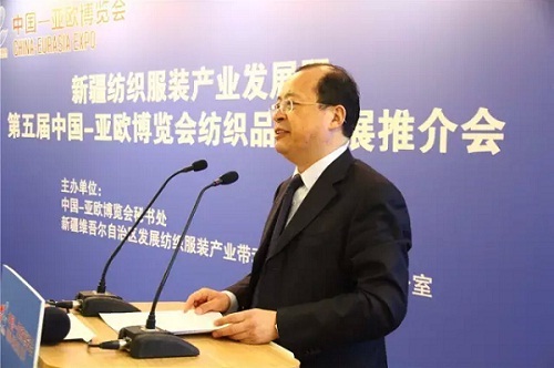 近日,由中國-亞歐博覽會秘書處和新疆維吾爾自治區(qū)發(fā)展紡織服裝產(chǎn)業(yè)帶動就業(yè)領(lǐng)導(dǎo)小組辦公室共同主辦的新疆紡織服裝產(chǎn)業(yè)發(fā)展暨第五屆中國-亞歐博覽會紡織品服裝展推介會在上海舉行。