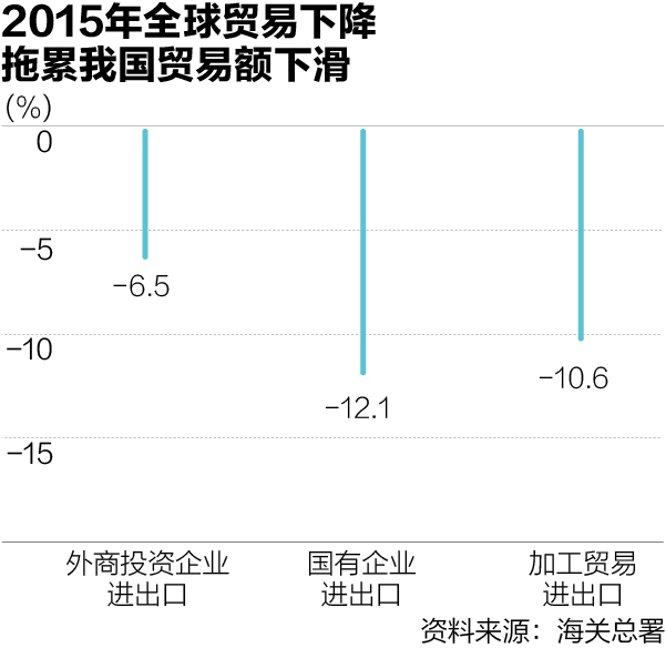中國商務(wù)部部長高虎城分析稱,2015年,在世界經(jīng)濟放緩、外需不振的情況下,全球性的產(chǎn)能過剩導(dǎo)致國際貿(mào)易收縮,大宗商品價格斷崖式下降。2015年原油、鐵礦石的價格都下降了40%左右,這是2015年中國外貿(mào)下滑的重要原因。此外,地緣政治沖突、極端主義和恐怖主義蔓延等問題也對世界經(jīng)濟和全球貿(mào)易造成負面影響。