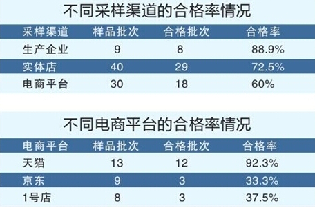 本次風(fēng)險(xiǎn)監(jiān)測(cè)監(jiān)督項(xiàng)目檢測(cè)中發(fā)現(xiàn)有4個(gè)批次的產(chǎn)品纖維含量不合格,合格率為94.9%。其中有1批次產(chǎn)品明示纖維含量為“棉95%氨綸5%”,實(shí)測(cè)值為“聚酯纖維86.6%棉13.4%”。