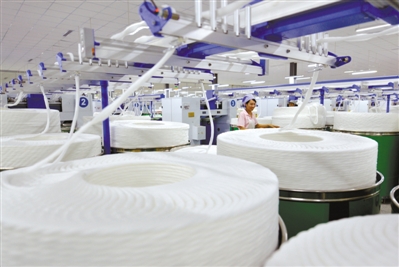 8月2日,吳忠市利通區(qū)恒豐紡織園明亮整潔的廠房內(nèi),工人有序作業(yè)。生態(tài)紡織是寧夏承接?xùn)|部產(chǎn)業(yè)轉(zhuǎn)移的重點(diǎn),目前已完成1至3號車間建設(shè),形成25萬錠紡紗規(guī)模。其中二期“百萬紗錠,百億產(chǎn)值”項(xiàng)目總投資11.6億元,包括高端新型纖維紡紗、服裝家紡面料織造、倉儲物流及國家棉花交割庫3個子項(xiàng)目。