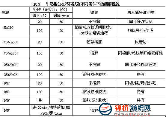 上海出入境檢驗檢疫局對牛奶纖維的檢測做了以下幾種試驗: