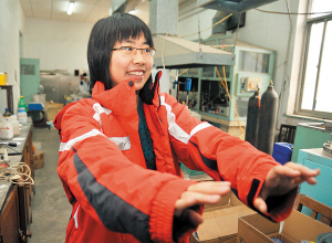 調(diào)溫衣服穿在身上,分量很輕,拉上拉鏈之后,覺得里面很柔軟。可能是試穿之前記者沒穿自己的外套,只穿著單衣,身上冷得直起雞皮疙瘩,所以最初穿上調(diào)溫衣服的時候,并沒有馬上感受到那種溫暖的感覺。
