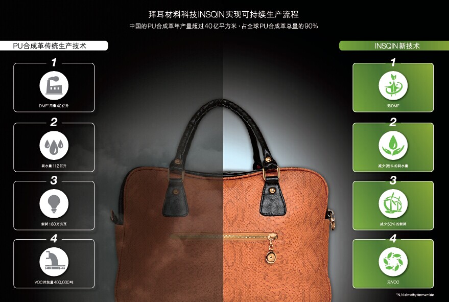 PU涂層技術(shù)可用于增強(qiáng)和改變我們?nèi)粘K?jiàn)的各種面料的性能。每年,約有70億雙鞋、20億只包以及10億多件服裝采用PU合成革或其他PU涂層面料制造1。憑借其純水性PU技術(shù)以及豐富的紡織行業(yè)經(jīng)驗(yàn),拜耳能通過(guò)INSQIN技術(shù)及服務(wù)組合,幫助品牌商在面料設(shè)計(jì)領(lǐng)域發(fā)掘新的可能性,探索“神奇”PU涂層面料的創(chuàng)造性。