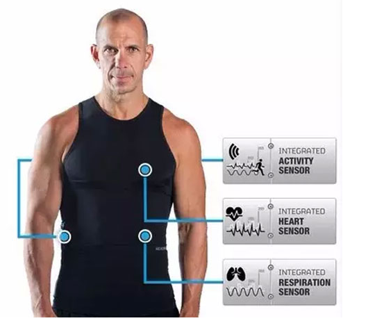 Hexoskin是智能運動服裝里最著名的產(chǎn)品之一,一款Hexoskin運動背心集成了生物傳感器,可以讓經(jīng)常參加體育鍛煉的用戶能監(jiān)測自己的鍛煉進(jìn)度。在白天,Hexoskin可以測量心率、心率變化/恢復(fù)、步數(shù)、卡路里消耗和呼吸等數(shù)據(jù)。