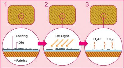 自動清潔服裝的布料是由Lotus NanoTM納米仿生科技,及納米自清潔科技制造而成的。自動清潔服裝能夠防止和降解污物,有色污漬,塵埃,異味,細菌,甚至清除有害氣體。透過傳統(tǒng)的浸漬、焙干、焙烘處理,布料中的纖維便會形成一個納米結構層。