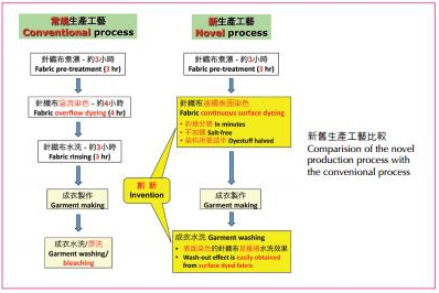 世界上首創(chuàng)成功應用活性染料對棉針織布進行表面染色,并制造具有時尚牛仔服裝水洗效果的T-恤.還具有低碳環(huán)保生產(chǎn)的優(yōu)點