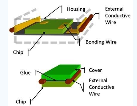 傳統(tǒng)的RFID標(biāo)簽解決方案(如上圖),與外部導(dǎo)體的連結(jié)需要兩個(gè)步驟:先是內(nèi)部組件要與外罩鏈接(打線),再來(lái)是外罩與外部導(dǎo)體的連結(jié);但E-Thread技術(shù)(下圖),是一種創(chuàng)新的微電子封裝技術(shù),只需要一個(gè)步驟──讓芯片直接鏈接扮演天線、電源或數(shù)據(jù)總線的兩條一組導(dǎo)體。