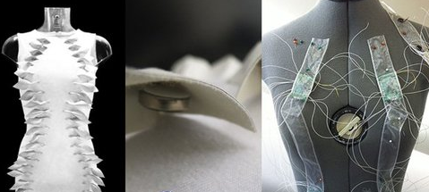 一款名叫“Karma Chameleon”的智能衣裳是由加拿大肯高迪亞大學(xué)的教授Joanna Berzowska研發(fā),它能夠從人體中吸收能量并存儲(chǔ)起來,然后借助這些能量并根據(jù)運(yùn)動(dòng)狀況改變自身的視覺屬性。此外,衣服的形態(tài)和外形也可以由穿衣者來控制改變。