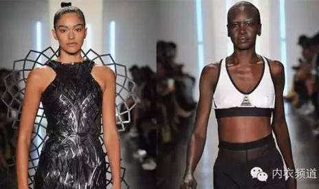 Chromat Aeros Sports Bra運(yùn)動(dòng)內(nèi)衣似乎更加實(shí)用,由萊卡,網(wǎng)眼,氯丁橡膠及3D打印框架組成。像裙子一樣,運(yùn)動(dòng)內(nèi)衣也是在檢測(cè)到穿戴者出汗、呼吸或體溫變化后利用集成形狀記憶合金打開內(nèi)衣的通風(fēng)口,幫助穿戴者透氣。當(dāng)穿戴者體溫恢復(fù)正常后,通風(fēng)口將自動(dòng)關(guān)閉。