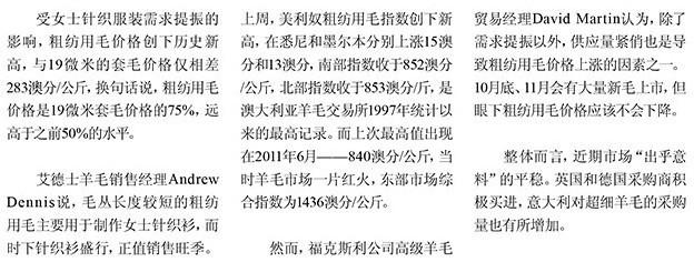 粗紡用毛價(jià)格指數(shù)創(chuàng)新高