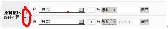 2、原料配比,選擇經(jīng)緯不同,當(dāng)經(jīng)為長絲時不填,只填寫緯紗。方法同常規(guī)織物。