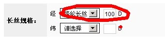 3、在長絲規(guī)格中選擇“經(jīng)長絲”:滌綸長絲,在空格中填寫長絲規(guī)格100;緯因為不含長絲,勿須填寫。