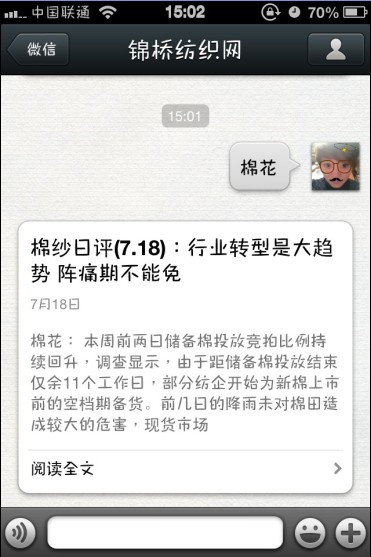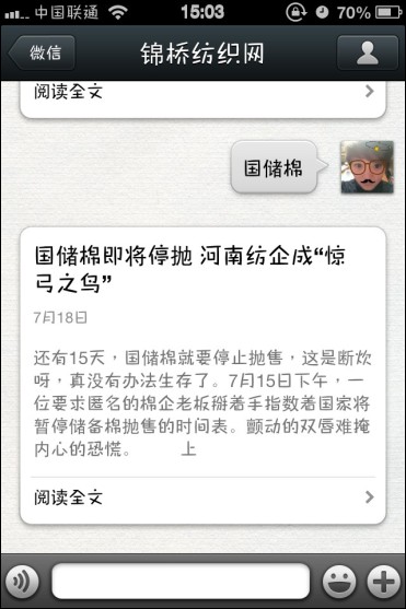 用微信搜最新紡織資訊