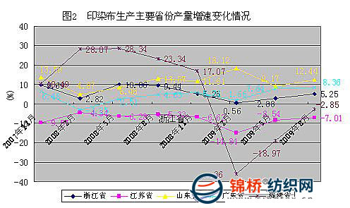 1~8月份,浙江、江蘇、廣東、山東和福建等東部沿海五省產(chǎn)量301.41億米,占全國(guó)總產(chǎn)量的90.12%,其中,浙江省185.80億米,占全國(guó)產(chǎn)量的55.56%。五省中江蘇省和福建省產(chǎn)量同比分別減少7.01%和2.85%,浙江省、廣東省和山東省同比分別增加5.25%、8.36%和12.44%。 1~8月份印染布產(chǎn)量增速回落2.79個(gè)百分點(diǎn),主要省份中,福建省回落幅度達(dá)26.19個(gè)百分點(diǎn),浙江省、江蘇省和山東省分別回落4.19、1.68和0.63個(gè)百分點(diǎn),只有廣東省上升3.73個(gè)百分點(diǎn)。江蘇省繼續(xù)延緩2007年5月以來(lái)的負(fù)增長(zhǎng)態(tài)勢(shì)。福建省自2008下半年開(kāi)始增速持續(xù)回落,2009年1~2月份出現(xiàn)大幅負(fù)增長(zhǎng),之后雖然降幅在逐漸收窄,但1~8月份仍未走出負(fù)增長(zhǎng)。